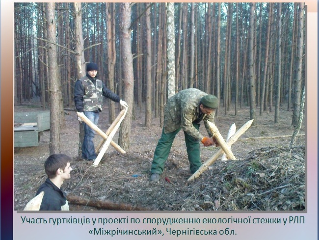 - участь у природоохоронних акціях, еколого-просвітницьких заходах (європейська ніч кажанів, бушміт, збереження амурського тигра, збереження болотяної черепахи, спорудження екологічної стежки);