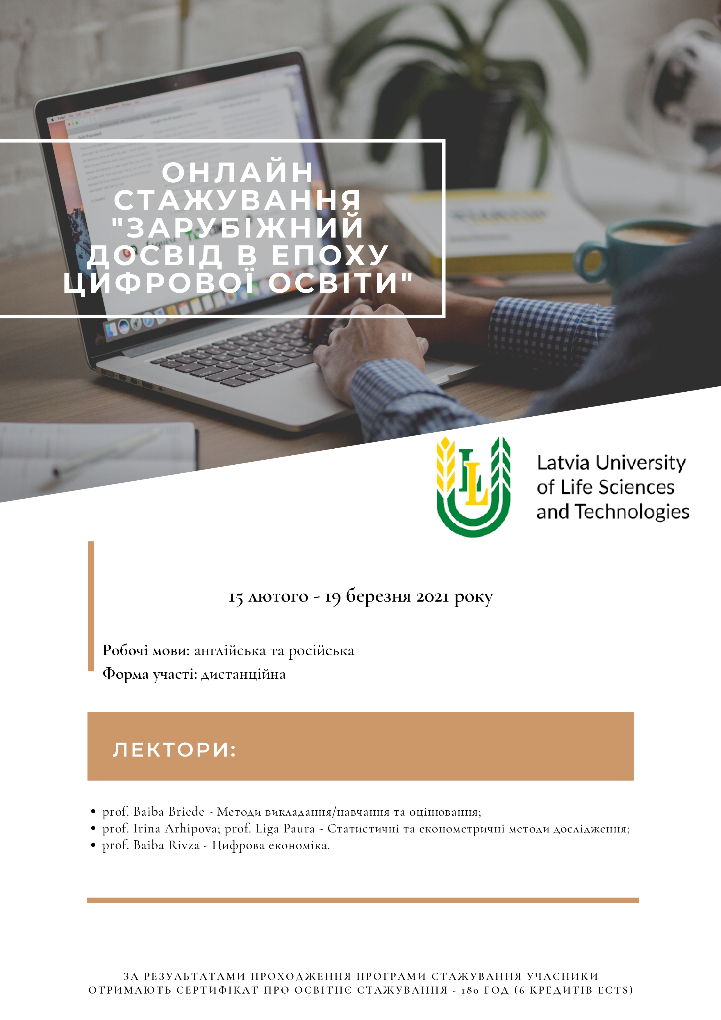 Міжнародне стажування для науково-педагогічних працівників в Латвійському Університеті наук про життя та технологій (Latvia University of Life Sciences Technologies)