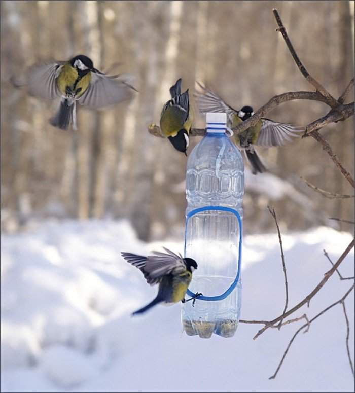 Зробити годівниці для підгодівлі птахів – це просто! Для підгодівлі використовуйте насіння соняшника (не смажене і не солоне), зерно (пшениця, просо, ячмінь, овес), несолоне сало, крупи, подрібнені грецькі горіхи тощо.