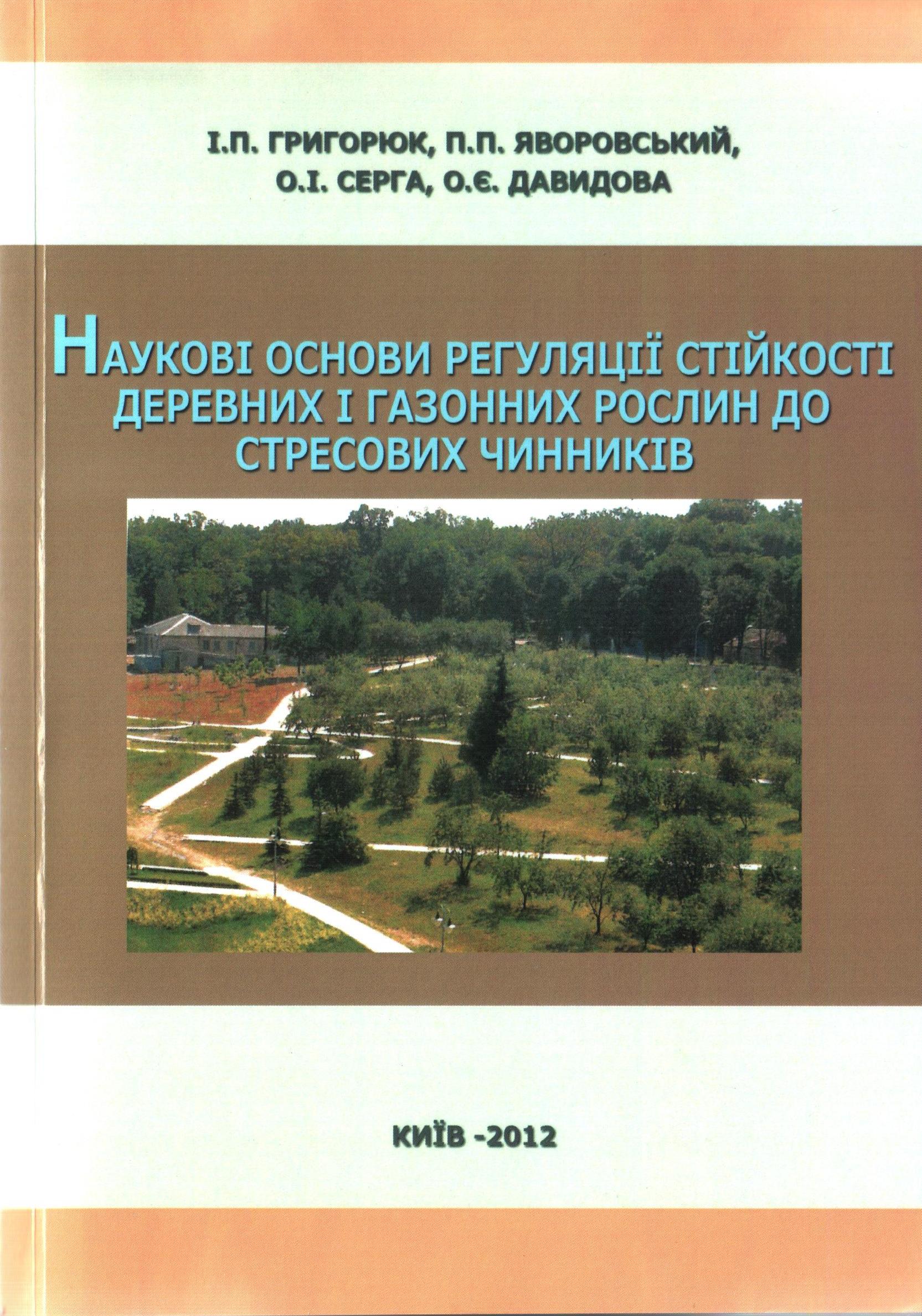 7. Наукові основи регуляції стійкості деревних і газонних рослин до стресових чинників: монографія / Григорюк І.П., Яворовський П.П., Серга О.І., Давидова О.Є. Київ: «Аграр Медіа Груп», 2012 . 310 с.