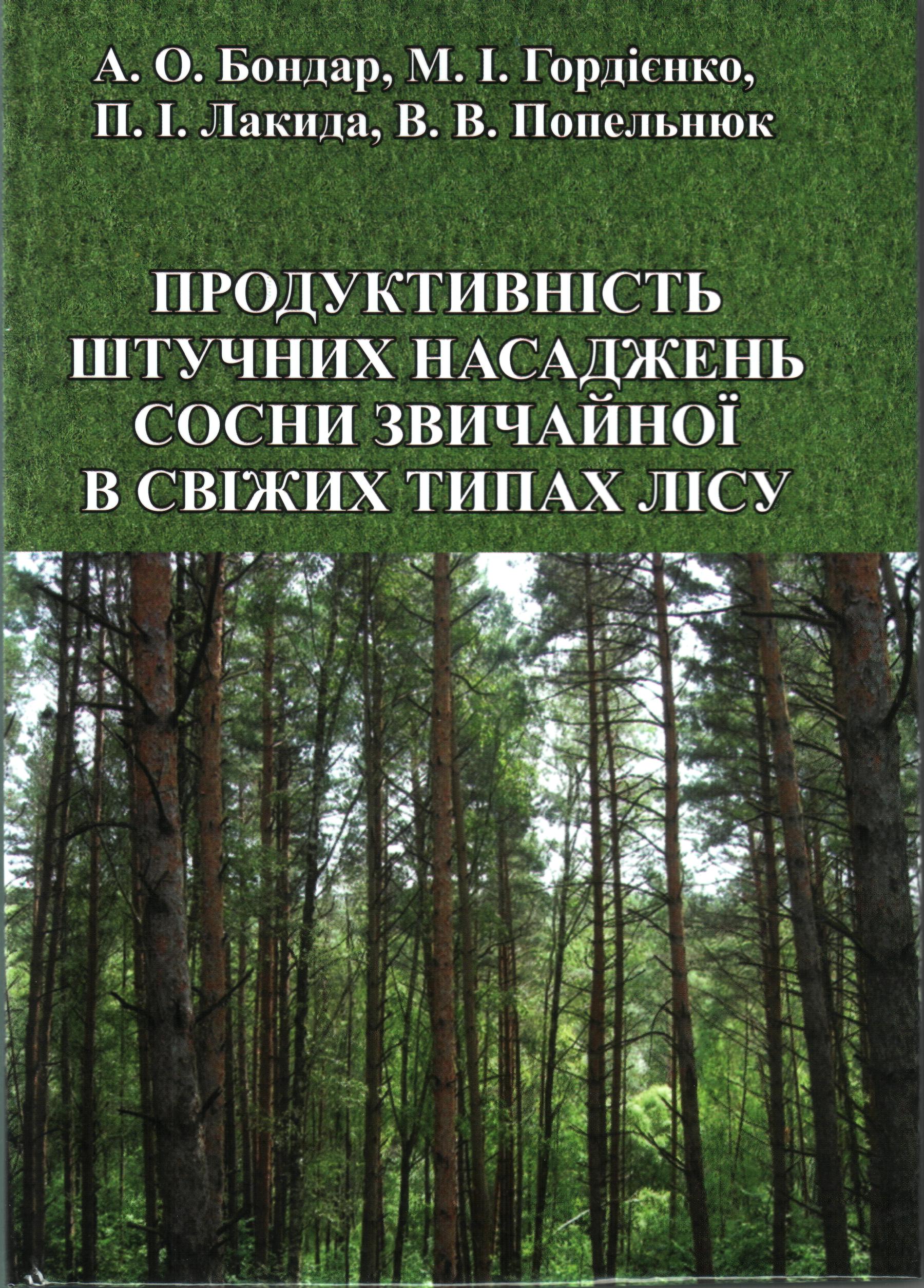 4. Продуктивність штучних насаджень сосни звичайної в свіжих типах лісу: монографія / Бондар А.О., Гордієнко М.І., Лакида П.І., Попельнюк В.В. Вінниця: Глобус-Прес, 2009. 180 с.