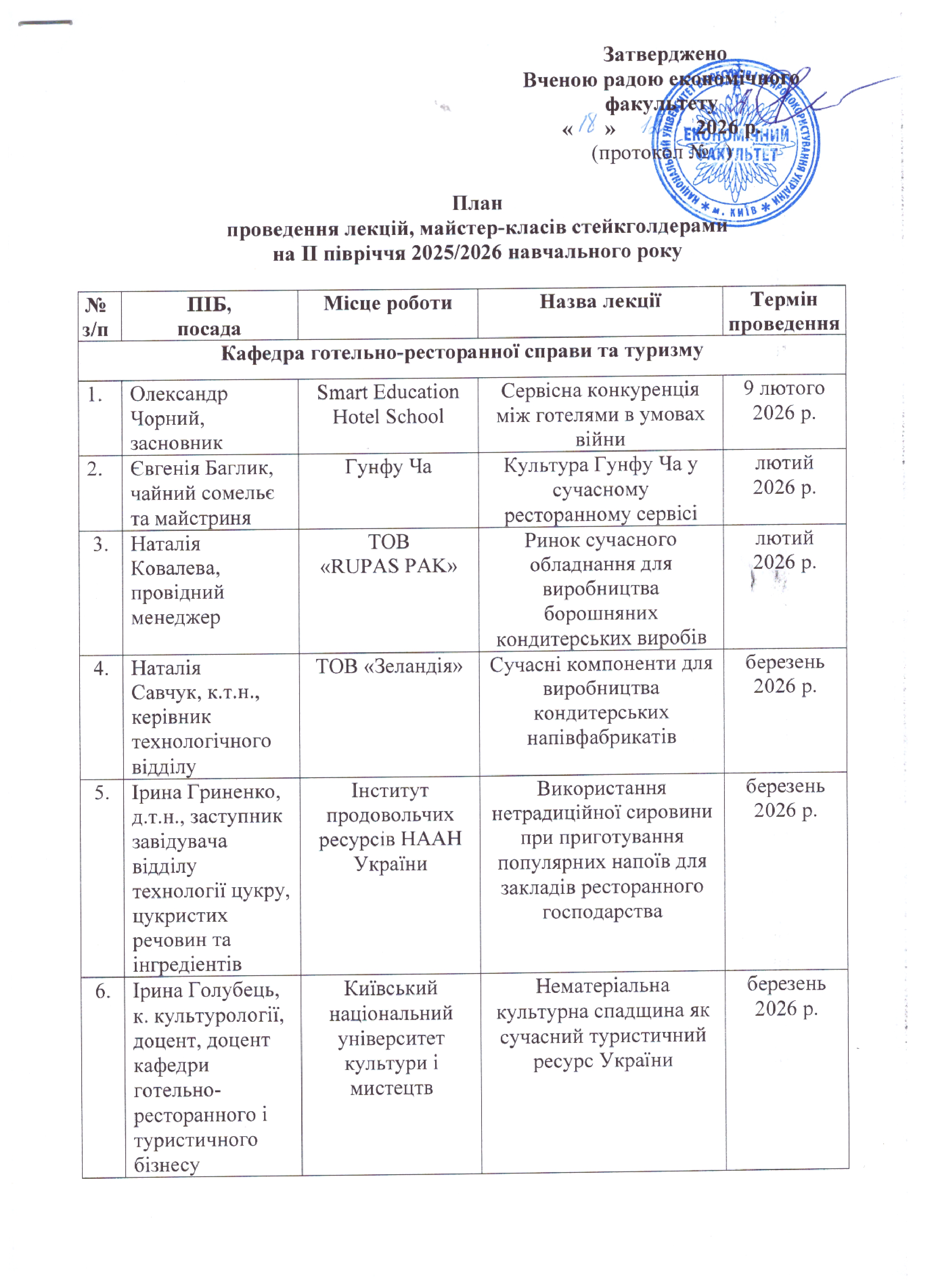 План проведення лекцій стейкголдерами на II півріччя 2026 року