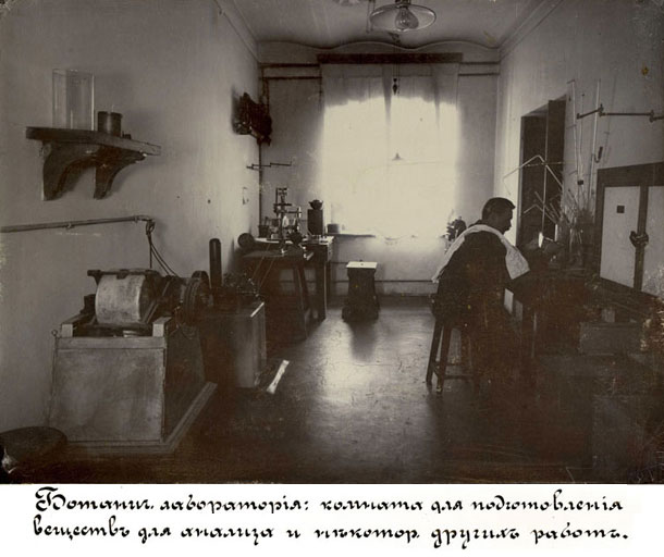 1902 рік. Ботанічна лабораторія сільськогосподарського відділення КПІ: кімната для підготовки речовин для аналізу