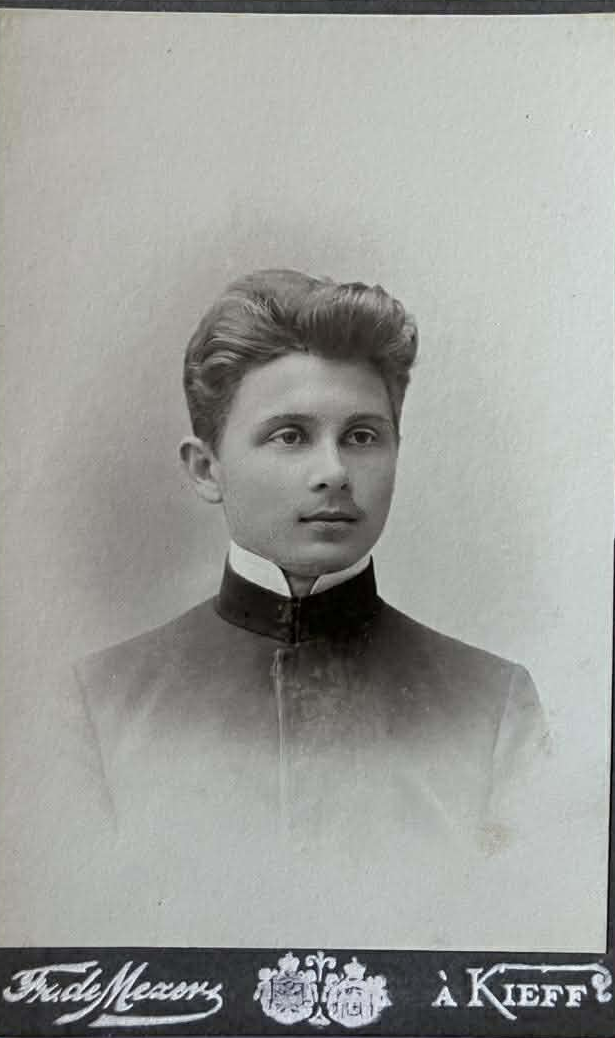 Дата народження- 9 липня 1888 р. Соціальний статус/походження - дворянин, віросповідання- православʼя. Базова освіта до вступу в КПІ, рік завершення навчання - Мінська гімназія, 1906 р. Колишній студент фізико-математичного факультету Санкт-Петербурзького університету.
