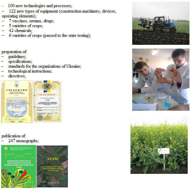 Scientific achievements of the scientists of the university are a significant contribution to the development of agro-industrial complex of Ukraine. In 2012, as a result of extensive research among the achievements of the university were creation of: