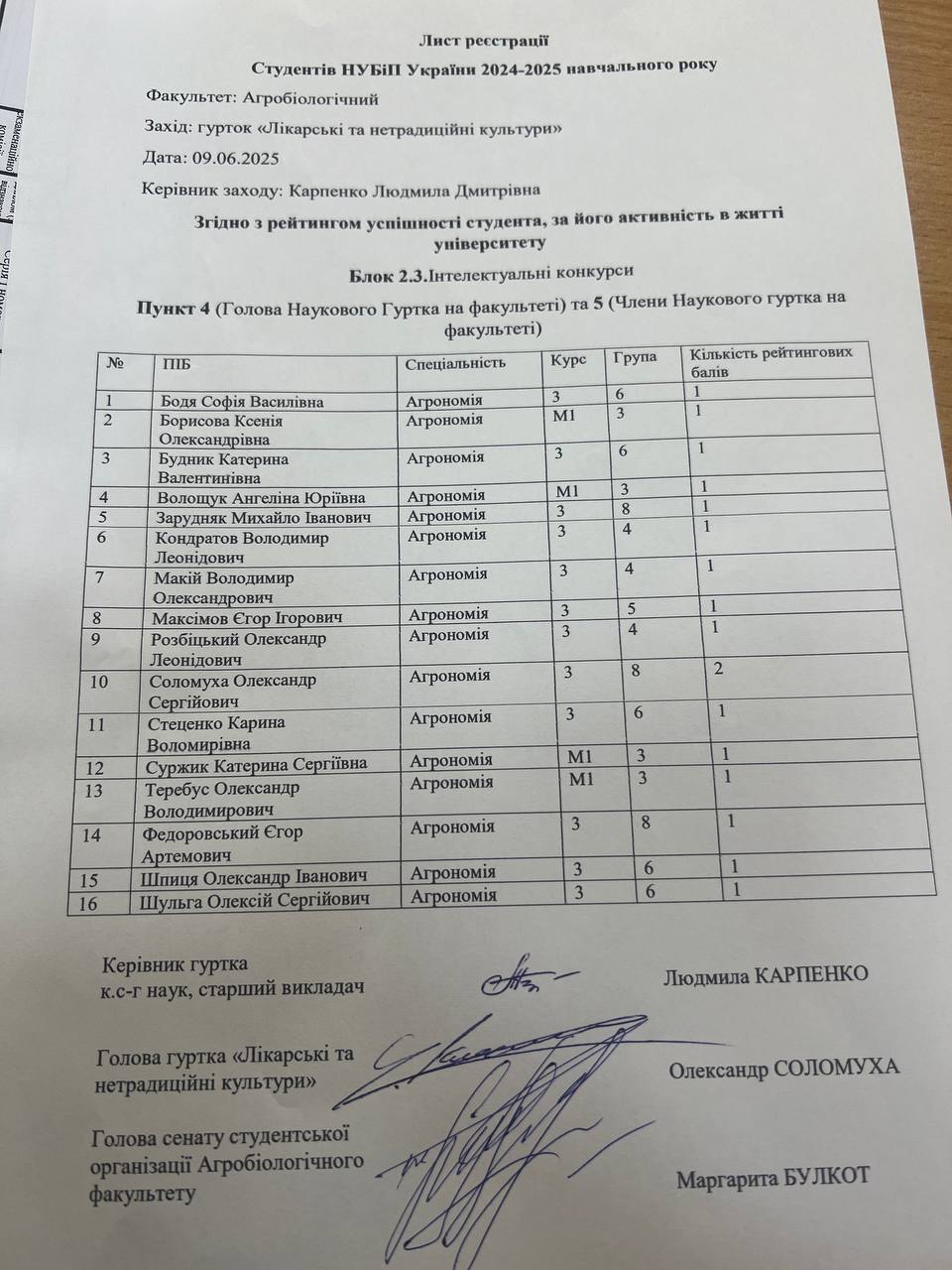 Студентський науковий гурток «Лікарські та нетрадиційні культури» – є добровільним об’єднанням зацікавлених у поглибленому вивченні відповідного наукового напрямку діяльності кафедри.