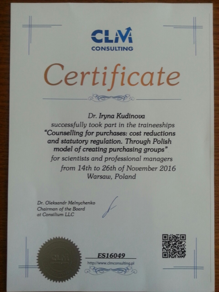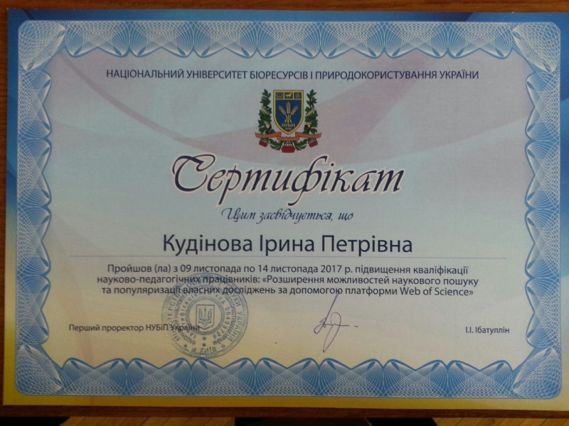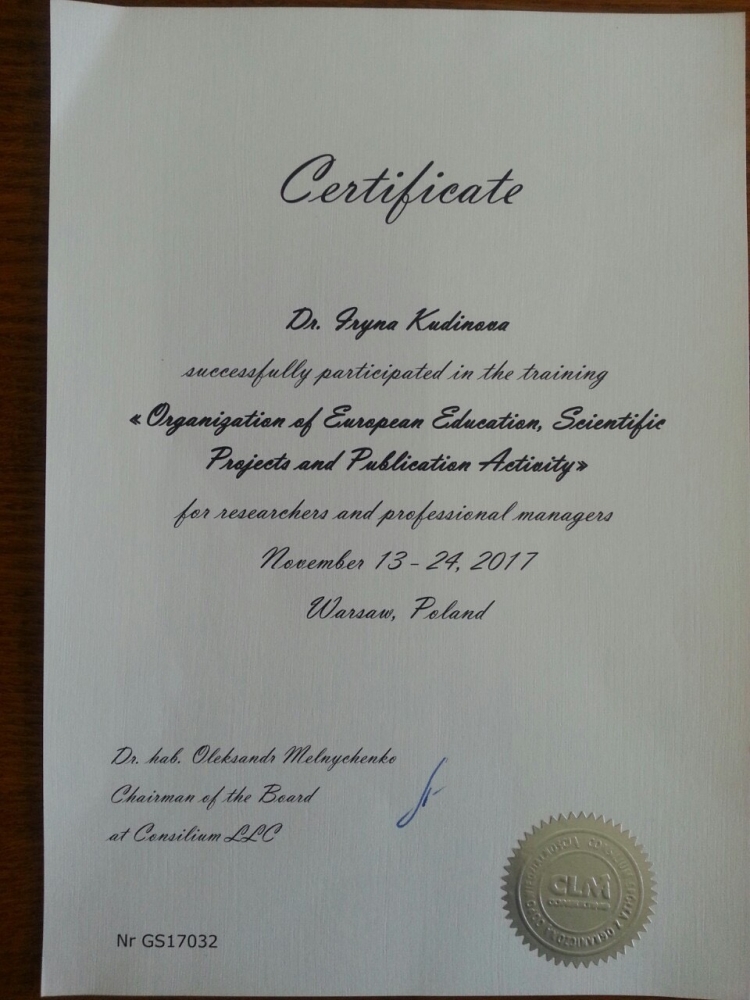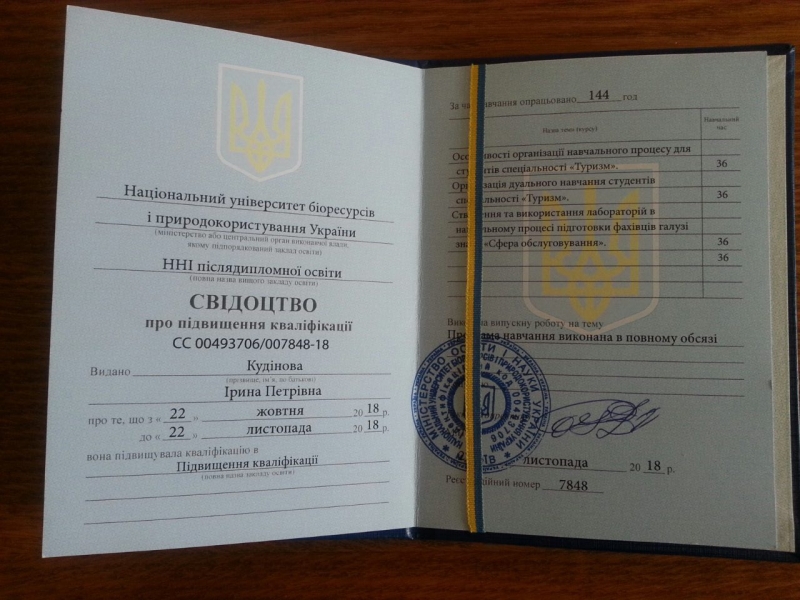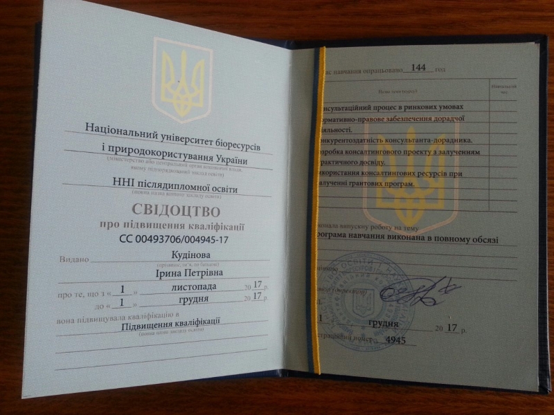Свідоцтва про підвищення кваліфікації