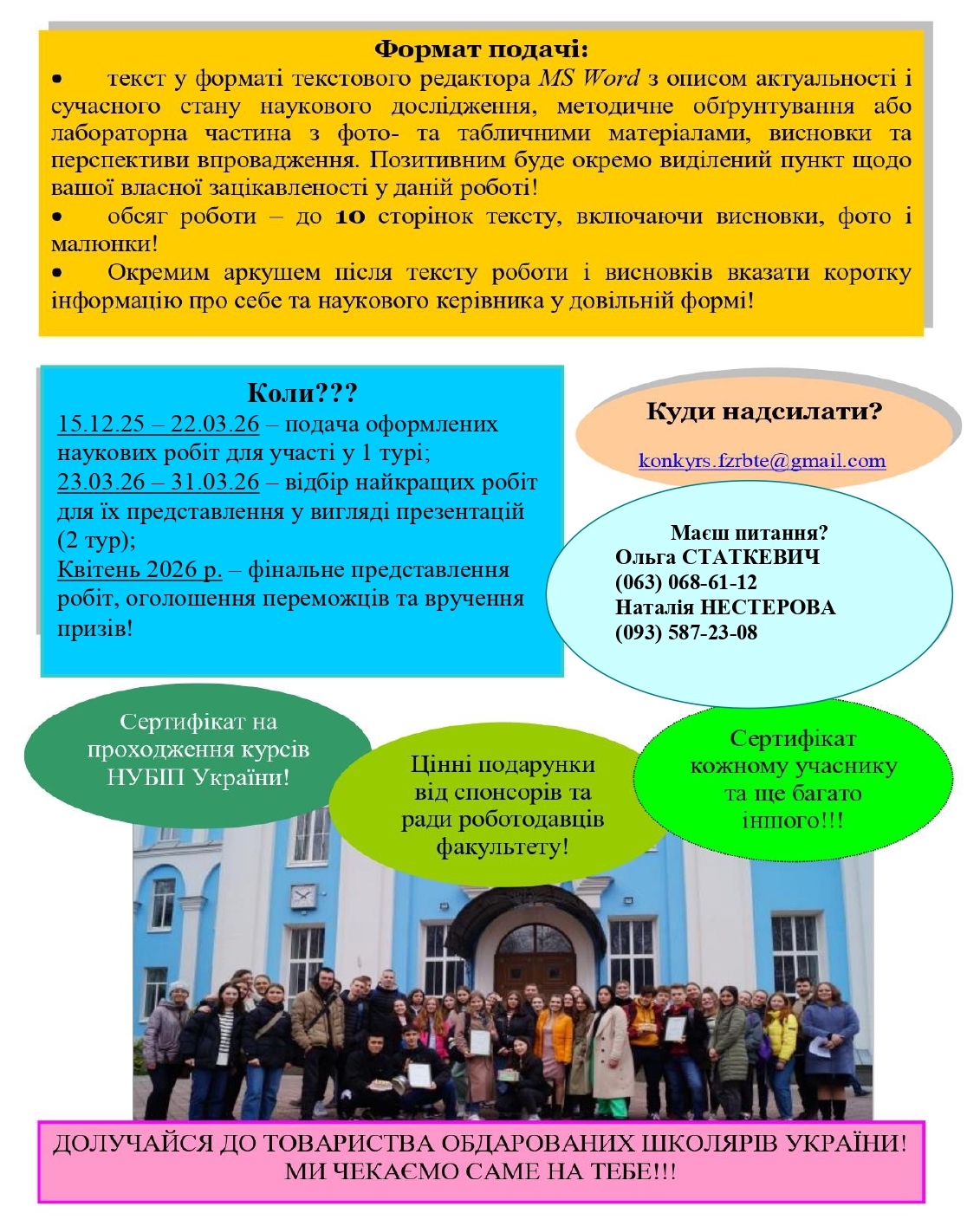 Контактна особа: заступник Голов Ради молодих вчених