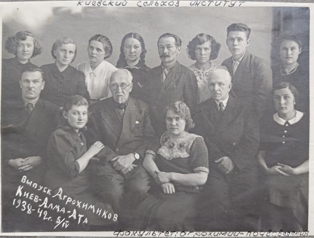 На фото зроблені позначки «Випуск Агрохіміків. Київ – Алма-Ата, 1938–42. 5.IV».