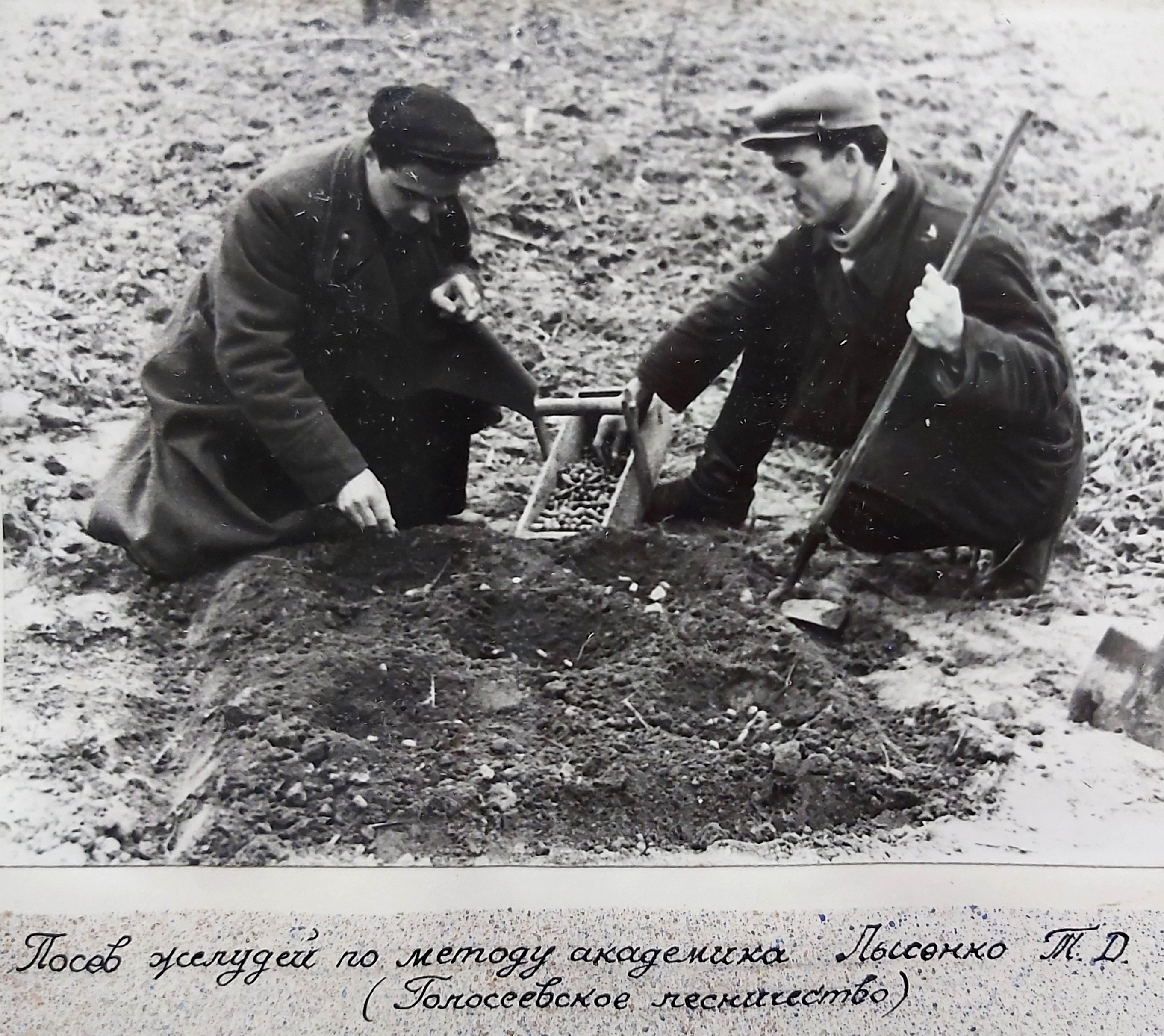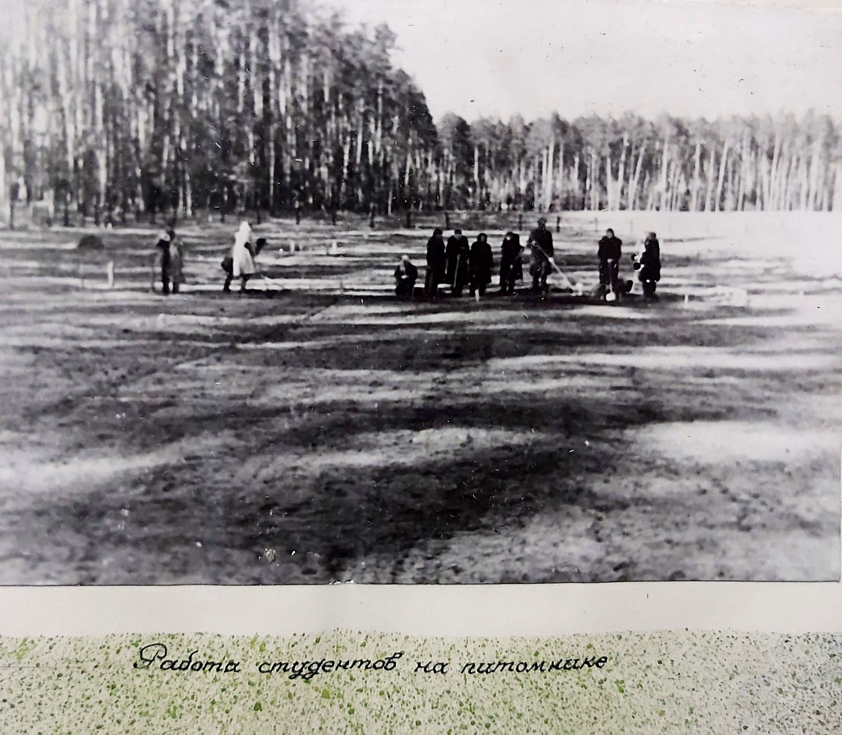 1949 рік. Лісовідновлювальні роботи студентів Київського лісогосподарського інституту у Боярському навчально-дослідному лісгоспі.