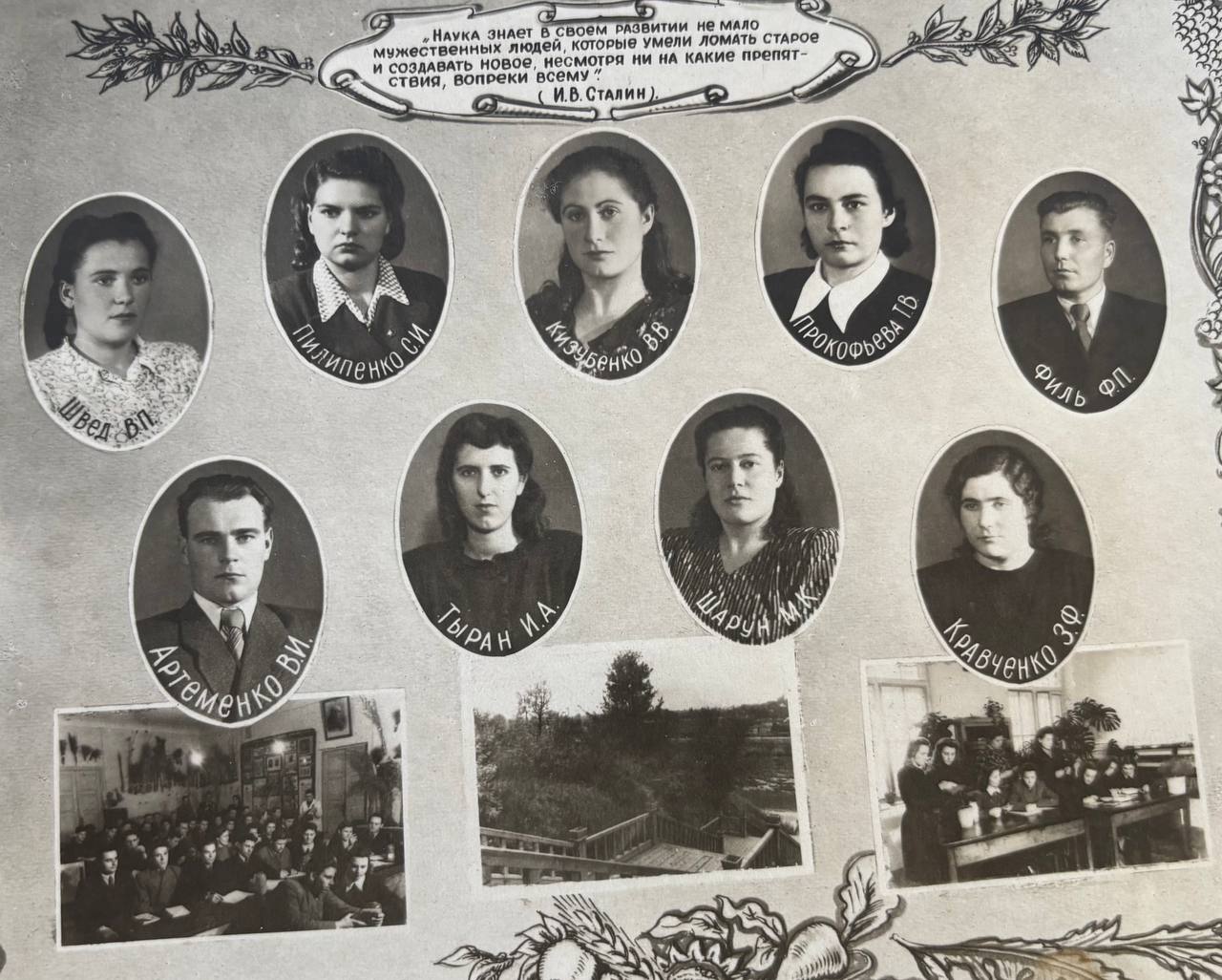 (мова оригіналу: декан ф-та механизации кандидат тех. наук доц. Кравченко П.П., секретарь партбюро и-та кандидат тех. наук Бенедикт Н.Н., директор института Пересыпкин В.Ф., кандидат эконом. наук секретарь Кагановического РК КП(б)У Малущенко М.Е., декан элекро. ф-та канд. тех. наук доцент Краверс А.Д., зав. спец. кафедрой гв. полковник Герой Советского Союза Краснокутский Х.М., доцент Каптановский А.Д., доктор тех. наук профессор Кияница В.Н., кандидат с/х наук доцент Калюжный В.Е., доктор тех. наук профессор Василенко П.М., нач. учеб. части ин-та Катюжинский В.В., доктор тех. наук профессор Крамаров В.С., канд. тех. наук доцент Мельниченко Д.Е., канд. тех. наук доцент Бондаренко С.П., ст. преподаватель Иноземцев Б.С., б. декан ф-та элект-ции канд. тех. наук доцент Коваленко В.П., канд. эконом. наук доцент Геллер Ю.Б., доцент Рощин П.И., канд. тех. наук доцент Корнеев Г.В., и.о. зав. каф. математики ст. преподаватель Дзюбенко С.Г., канд. тех. наук доцент Крупник Н.Д.)