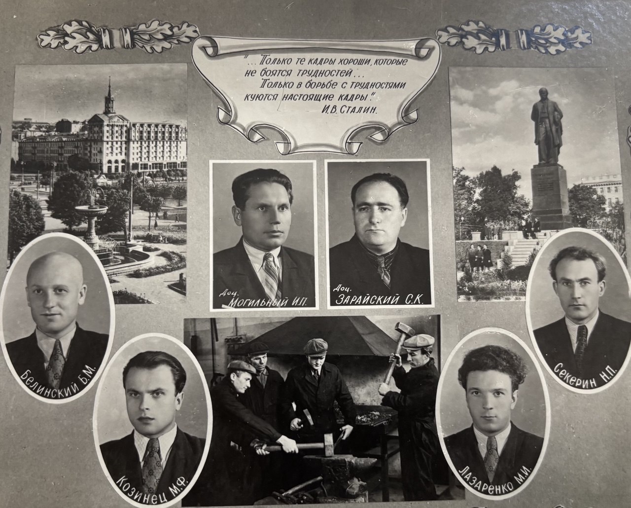 (мова оригіналу: зав. каф., доц. Котов А.Н., зав. каф. Макарин М.Н., зав. каф. доц. Глаголев С.А.,ст. препод. Клейнер С.М., ст. препод. Зігмунд К.Б., зав. каф., доц. има И.М., ст. препод. Малюгин Т.Т., зав. каф., доктор наук,проф. Скобец Е.М.,асс. Вертепная Г.И., зав. каф., доц. Сикорский Ю. А., асс. Кавецкий Н.С., ст. препод. Житов И.Н., проф. Тимофеев К.И., зав. каф., доц. Єзрохи И.А., ст. препод.Игнатенко И.М., доц. Данченко И. П., асс. Полывянный П.М., нач. отд. кадров Животовский П. И.)