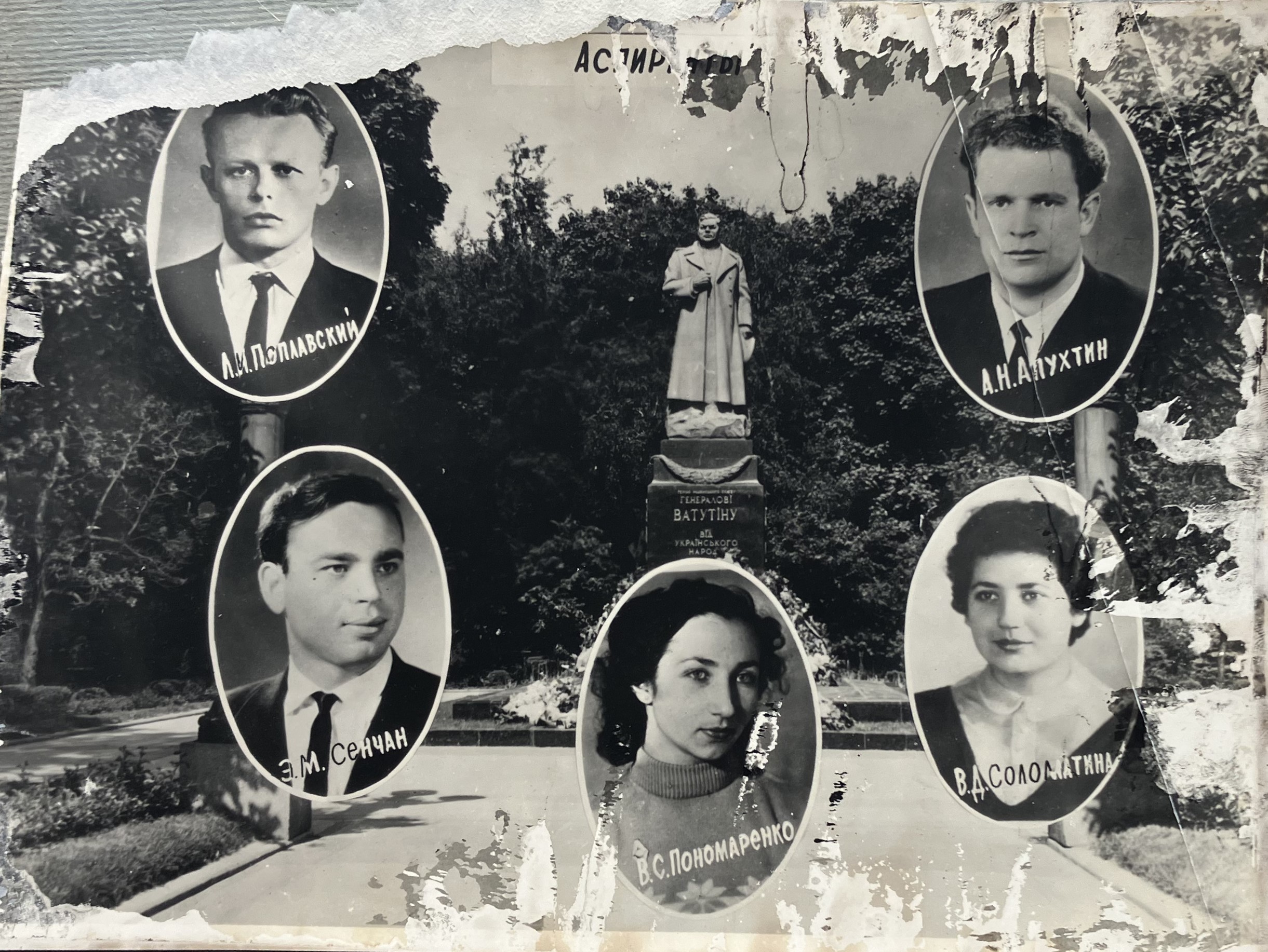Профессор Биленко Д.К., Проф. Зеленський М.А., Проректор по заоч.у. Катюжинский В.В., Ректор Профессор Пересыпкин В.Ф., Доцент ф-та проф. Городній М.Г., Секретарь парткома Фурдияк А.В., Доцент Петренко М.И., Профессор Григорович Д.А.