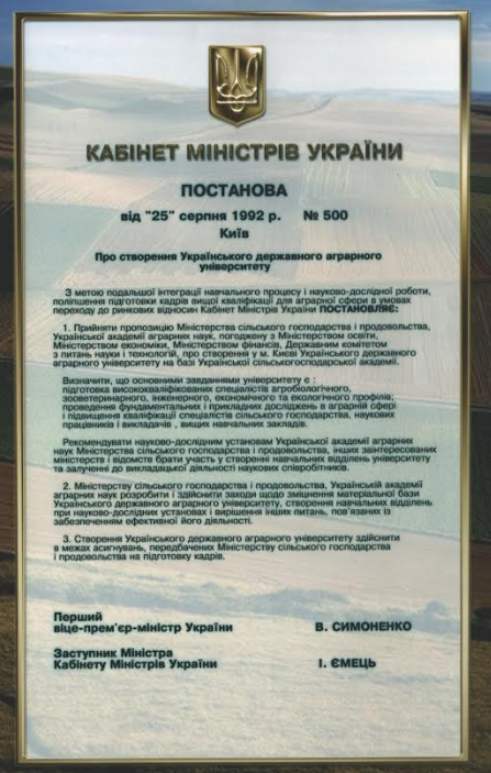 1992 рік – Український державний аграрний університет (Постанова Кабінету Міністрів України від 25 серпня 1992 року № 500. Про створення Українського державного аграрного університету на базі Української сільськогосподарської академії).