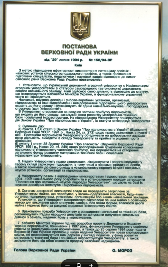 1997 рік - "Про відзначення 100-річчя з дня засування Національного аграрного університету" (Постанова Кабінету Міністрів України від 1 червня 1997 р. № 1356).