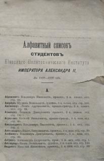 Алфавітний список студентів Київського політехнічного інституту імператора Олександра ІІ на 1899-1900 роки
