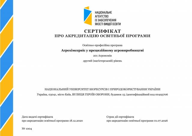 Сучасна агрономія все більше вимагає об’єктивності, керованості та зручності для аналізу. В межах підготовки бакалаврів з агрономії студенти здобувають суто технологічні знання по вирощуванню сільськогосподарських культур. Проте, агровиробництво є, перш за все, агробізнесом, що означає наявність комплексу управлінських рішень для отримання в підсумку, прибутку. Ефективний менеджмент агроресурсів є основою цього процесу. Для досягнення цієї мети фахівці мають володіти знаннями та навиками по технологіях та інструментарію комплексного агрохімічного моніторингу із оцінкою якості грунтів та потенціалу фітоценозів, і розумінням причини і наслідків просторової неоднорідності грунтового покриву в межах поля чи господарства. Вони повинні володіти ГІС-технологіями та теоретичними знаннями аналізу різноманітних шарів даних, пов’язаних із умовами території та технологіями вирощування сільськогосподарських культур. Створення карт-завдань та їх технічна реалізація за диференційованого внесення добрив та інших ресурсів, володіння різноманітними мобільними додатками для прийняття дієвих управлінських рішень є підсумовуючою основою підготовки магістрів вищезазначеної програми.