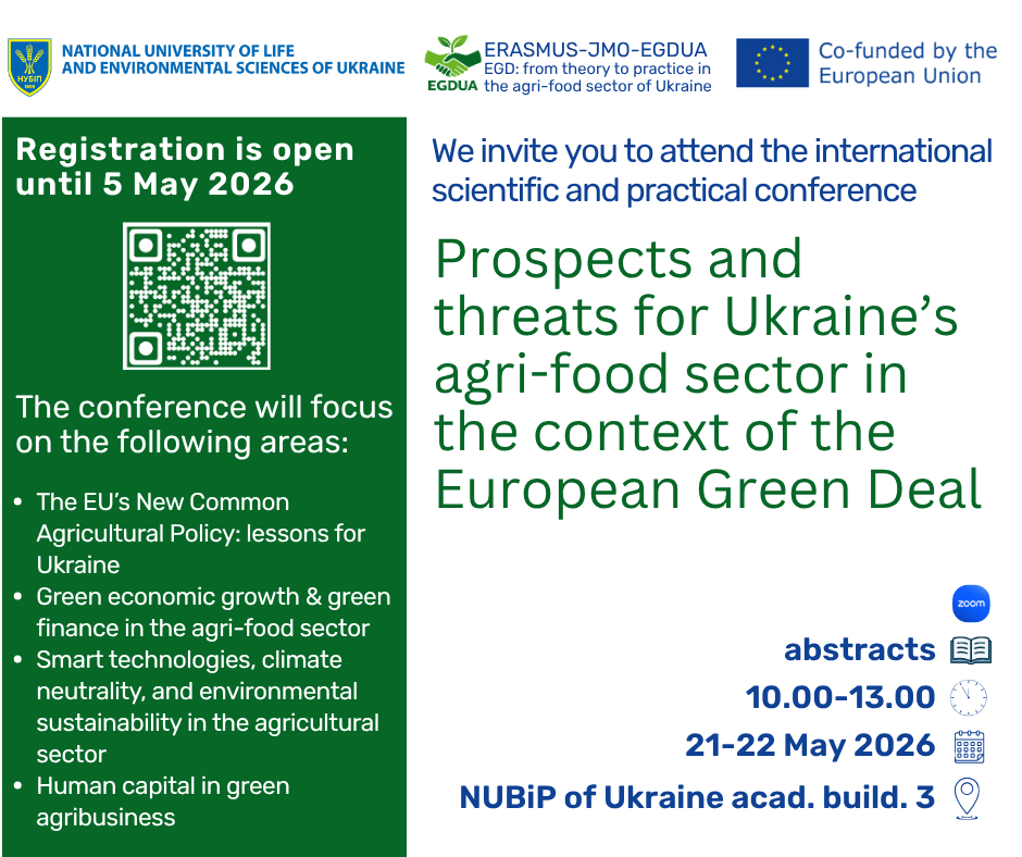 International scientific and practical conference “PROSPECTS AND THREATS FOR THE UKRAINIAN AGRI-FOOD SECTOR IN TERMS OF THE EUROPEAN GREEN DEAL”