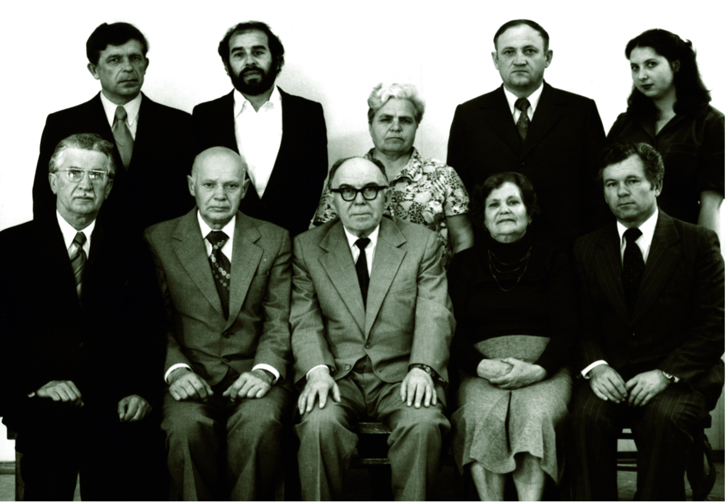bottom row (from left to right) - Associate Professor V. S. Bryl, Senior Laboratory Assistant L. O. Shchyhol, Associate Professor V.P. Polishchuk, professor I.S. Nagorny, Associate Professor S.K. Yukhymchuk.