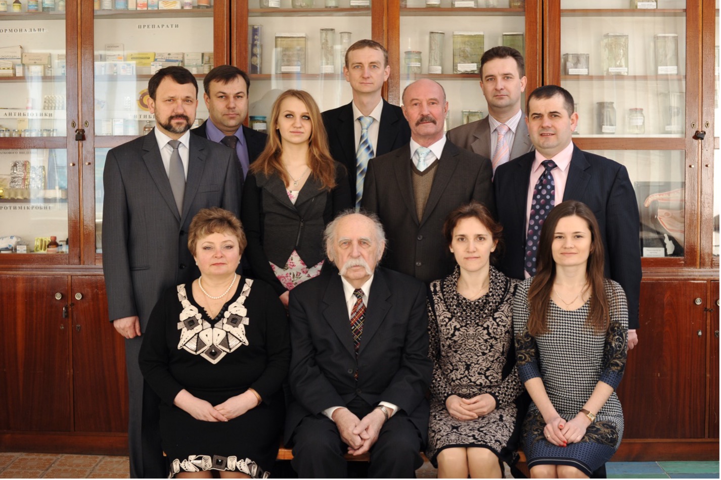bottom row (from left to right) - resident doctor A. I. Blyzniuk, assistant professor Y. S. Masalovych, professor V. V. Kovpak, Associate Professor, Head of the Department O. A. Valchuk, Associate Professor S. S. Derkach, Senior Laboratory Assistant N. I. Shevchuk, Postgraduate Student Y. Lytvynchuk; top row (from left) - Assistant M. I. Salizhenko, Assistant I. M. Cheverda, Associate Professor V. M. Mazur, Associate Professor Y. V. Zhuk, Associate Professor V. M. Lakatosh, Postgraduate Student A. Lasiichuk