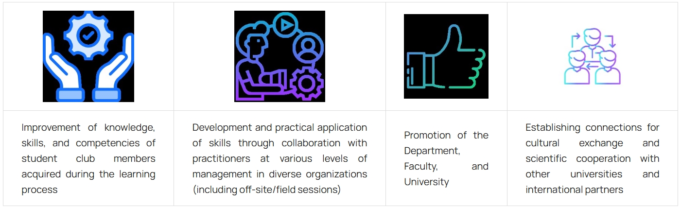 The club’s activities are focused on fostering professional, personal, and cognitive competencies of students by engaging them in research projects, analytical work, and scientific events.