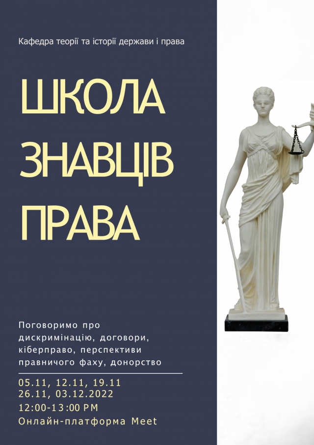 05 листопада 2022 р. стартує осіння сесія вебінарів просвітницького проєкту кафедри ТІДП "Школа знавців права"