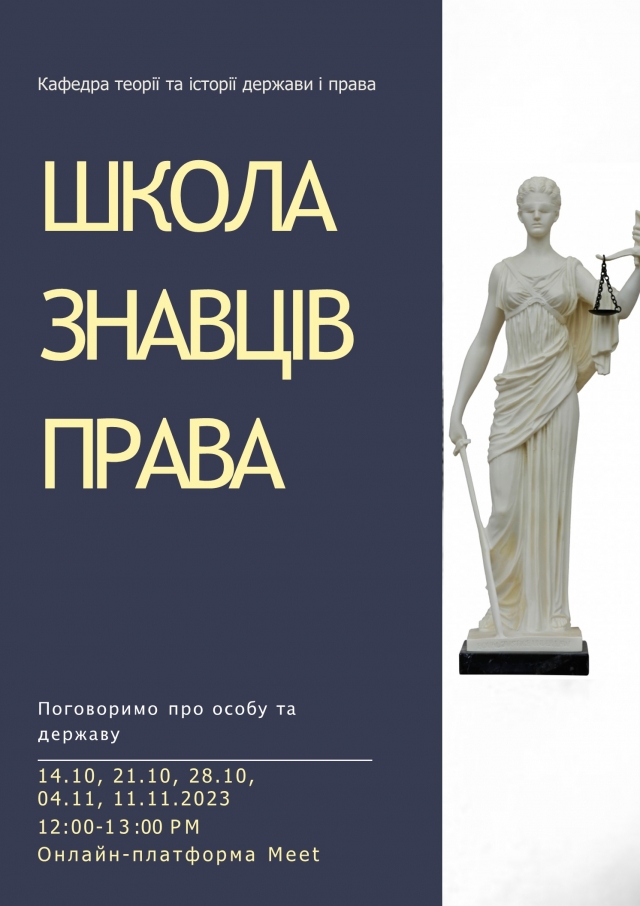 14 жовтня 2023 року стартує осіння сесія онлайн-вебінарів просвітницького проєкту кафедри ТІДП "Школа знавців права"