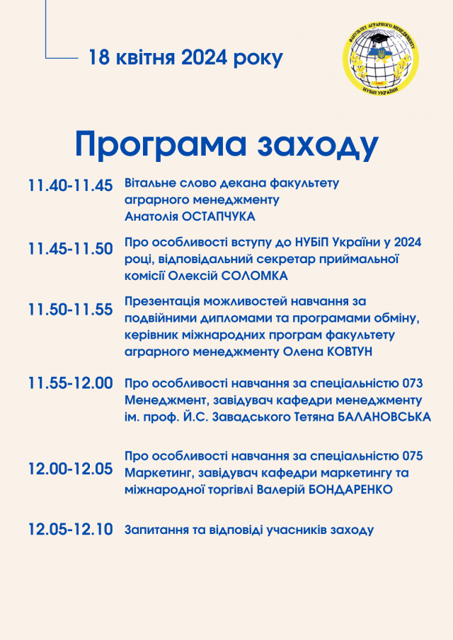 18 квітня – День відкритих дверей для випускників коледжів та технікумів на факультеті аграрного менеджменту