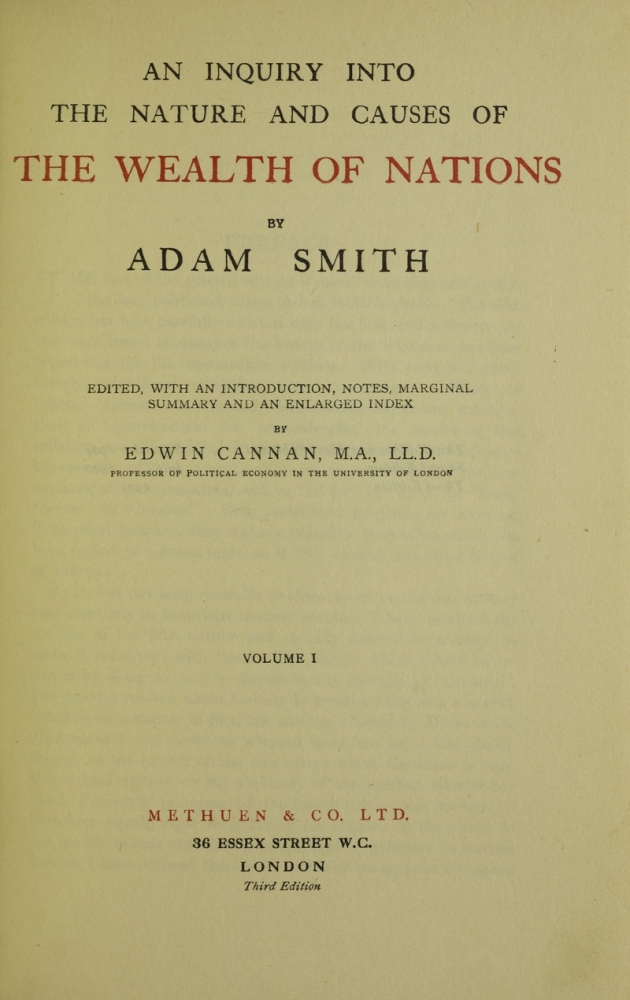 Надалі, в його найвідомішій книзі «Дослідження про природу і причини багатства народів» він розгортає право особистої свободи індивіда до філософського підґрунтя економічного лібералізму. Згідно його концепції суспільство – це асоціація вільних приватних власників, що в умовах розподілу праці переслідують свій приватний інтерес. Конкуренція тут повинна забезпечувати свободу особистості. Сміт захищає принцип невтручання (laissez-faire), який засуджує вторгнення в вільну гру ринкових сил - «невидима рука ринку» скеровує всі різноманітні дії до загальної суспільної користі.