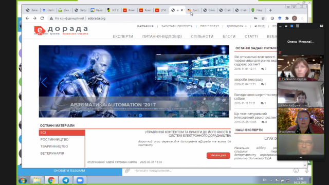 4 листопада 2020 року відбулось засідання навчально-наукової лабораторії економічної теорії та біоекономіки. Обговорено перспективи подальшого наукового супроводу дорадницької діяльності з питань розвитку біоекономіки на платформі знань Electronic System Extention Ukraine edorada.org.
