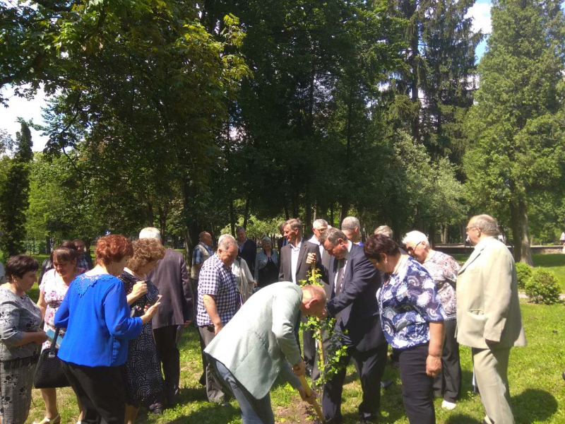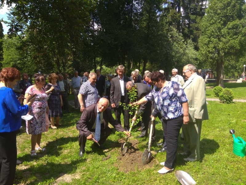 На завершення урочистого зібрання випускники-ювіляри біля першого корпусу висадили вирощене на розсаднику кафедри пам’ятне деревце глоду колючого форма «Пауль Скарлет», яке символізуватиме їх щиру вдячність своїй Alma mater, своїм вчителям за їх душевне тепло і побратимам за пуд солі студентських років.