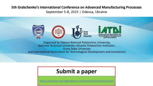 5th Grabchenko’s International Conference on Advanced Manufacturing Processes Invastigation (pdf) Ivan Rogovskii 19 січня 2023 року 02:00 - 02:00