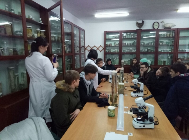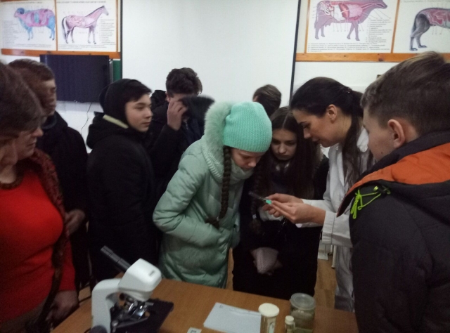 За сприяння доцентів кафедри паразитології та тропічної ветеринарії О. Семенко та І. Пашкевич учні були ознайомлені з найбільш поширеними збудниками паразитарних хвороб тварин і людини та про основні заходи профілактики паразитарних хвороб.