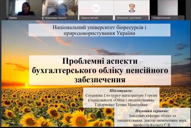11 грудня, у рамках 75-ї науково-практичної студентської онлайн конференції «Концептуальні засади збалансованого розвитку аграрного сектору економіки України в умовах глобальних викликів» секція «Облік, оподаткування і контроль в активізації діяльності суб’єктів господарювання» з вітальним словом відкрив декан економічного факультету д.е.н., професор Діброва Анатолій Дмитрович. Розпочала проведення конференції керівник секції, завідувач кафедри обліку та оподаткування, д.е.н., професор Калюга Євгенія Василівна, яка наголосила на важливості її проведення, адже студенти мають змогу презентувати свої здобутки й наукові досягнення. Конференція проходила в онлайн форматі на платформі Cisco Webex Meetings. Основні напрямки конференції, які представлені, викликали значний інтерес у студентів. Загаломдо конференції долучилися більше 40 учасників Доповідачі спеціальності «Облік і оподаткування» всіх навчальних курсів підтвердили актуальність питань в сучасних умовах, винесених на обговорення в секції. Магістри першого року навчання та бакалаври 1-4 курсів мали змогу оприлюднити свої наукові здобутки.