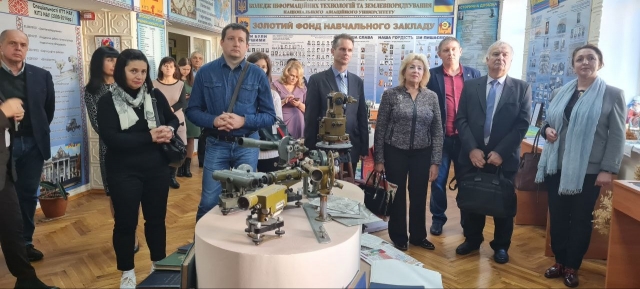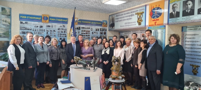 Основним організатором і модератором круглого столу виступав Олександр Юрійович Ямковий (фото 4, третій з правої сторони) кандидат педагогічних наук, заступник директора з навчально-виробничої роботи ВСП «Фаховий коледж інформаційних технологій та землевпорядкування Національного авіаційного університету», який прекрасно організував всі етапи заходу, почавши з екскурсії по дуже цікавому музею історії коледжу (див. фото 4).