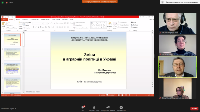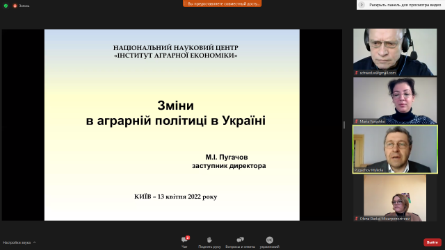 13 квітня 2022 р. за ініціативи Німецько-українського агрополітичного діалогу (APD, Україна) відбулася третя Міжнародна пленарна дискусія на тему: «Зміни в аграрній політиці в Україні – шанси та можливості у стані війни» у рамках панельних обговорень на тему: «Чи призведе повномасштабне російське вторгнення в Україну у 2022 році до кардинальних змін на агропродовольчих ринках?».