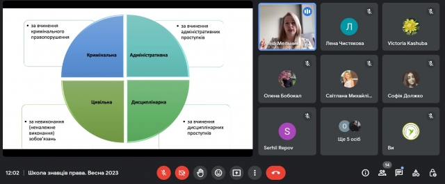 Питання бесіди стосувалися юридичної відповідальності загалом, а також кожного її виду – дисциплінарної, цивільно-правової, адміністративної та кримінальної.