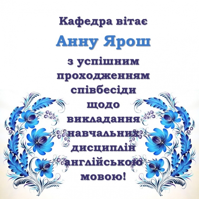 Анна Ярош долучилася до когорти англомовних викладачів