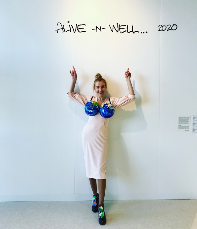 Так, дійсно. У Нью-Йорку проходив головний арт ярмарок мистецтва Арморі шоу, в якому приймало участь 178 галерей з 31 країни світу. Я поїхала туди з ціллю показати арт-перформанс, носила на собі величезний ліфчик, зроблений та розмальований начебто це півкулі Землі, з цьго ліфчику вилазили яскраві скульптури рук.