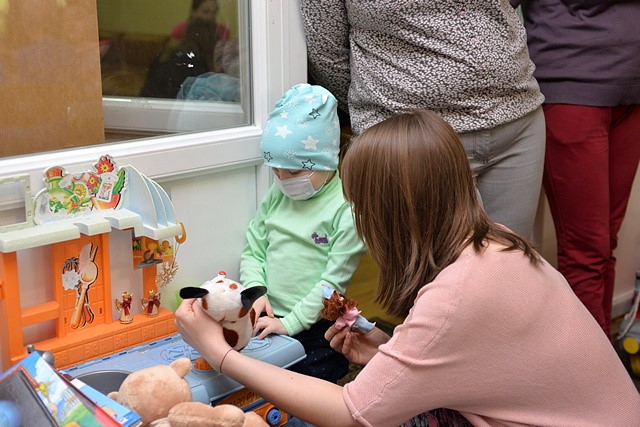 Діти з радістю приймали подарунки та солодощі, читали казки, брали участь у творчих тренінгах, підготовлених студентами гуманітарно-педагогічного факультету. Здавалось, що хвороба на деякий час просто відступила, бо діти були веселі та відкриті до розмови, багато усміхались і розповідали про себе. Майстер-клас з ліплення із солоного тіста пройшов у дружній, теплій та неймовірно щирій атмосфері. Не всі діти змогли прийти до ігрової кімнати, адже дехто з них буву цей час на процедурах. Таким діткам наші студенти рознесли подарунки по палатах.