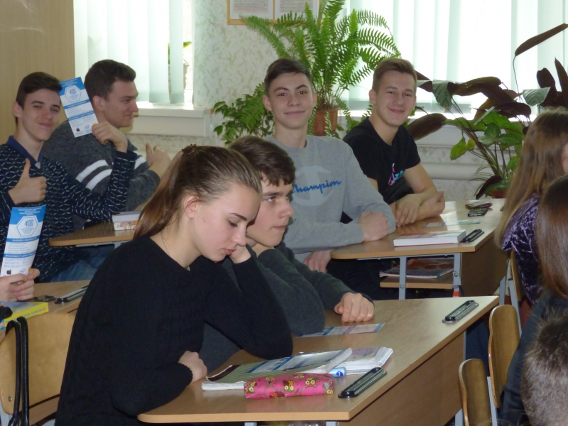Тому довго представляти факультет і університет не було потреби – одразу перейшли до конкретних запитань. Учнів особливо цікавили питання навчання за державним замовленням, проходження виробничої практики за кордоном, можливість одночасно навчатися в зарубіжних університетах-партнерах. Крім того, деякі учні школи активно займаються науковою роботою та поглиблено вивчають математику, інформатику та технології. Тому викладачі кафедри запропонували долучатись до заходів, що проходять в університеті та на факультеті інформаційних технологій: творчих конкурсів та студентських олімпіад, роботи на участі у студентських конференціях.