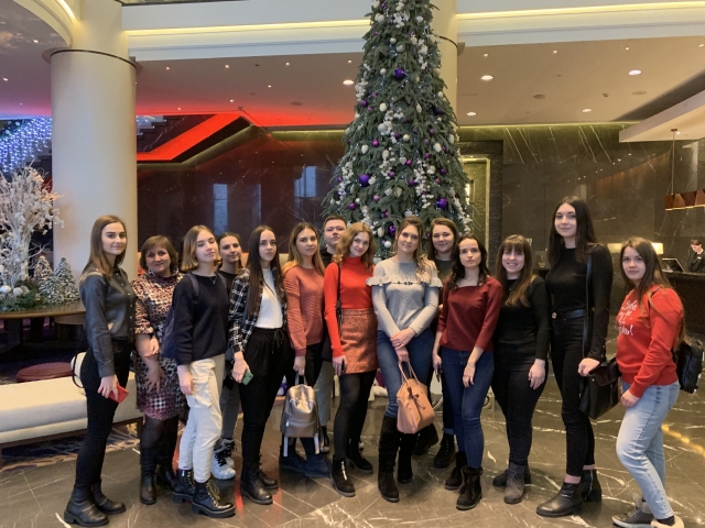 Все це нам розповіла і показала менеджер по персоналу Анастасія. Вона була дуже привітною, з радістю відповідала на питання студентів і навіть виконала деякі прохання, які не входили в план екскурсії! Так, наприклад, нам дозволили вийти на терасу, з якої відкрилися прекрасні види на історичний центр Києва і провели в департамент housekeeping. Також нам вдалося потрапити в конференц-залу та ресторан.