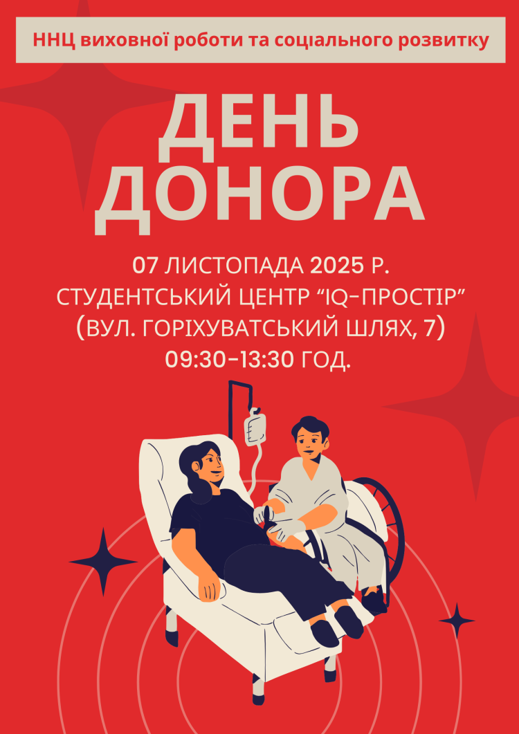 Донація проходитиме у студентському центрі "IQ-простір" (вул. Горіхуватський шлях, 7).