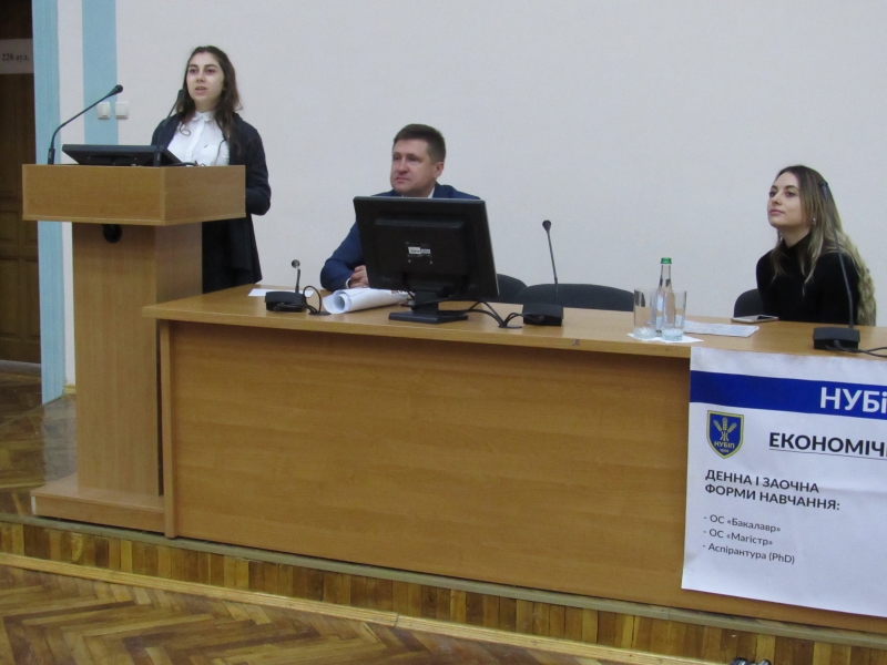 Також привітала гостей економічного факультету, випускниця 2006 року спеціальності "Економіка підприємства" Юля Райнхайдт, на сьогодні громадянка США. Вона розповіла власні враження від навчання на економічному факультеті. "Після закінчення школи, у 2001 році я продовжила навчання в НАУ на спеціальності Облік і Аудит, і в 2006 році захистила диплом магістра Економіка Підприємства. Мій вибір впав на аграрний тому, що університет має прекрасну репутацію, розташований в мальовничому куточку столиці, і, головне, за міжнародну співпрацю з університетами світу".