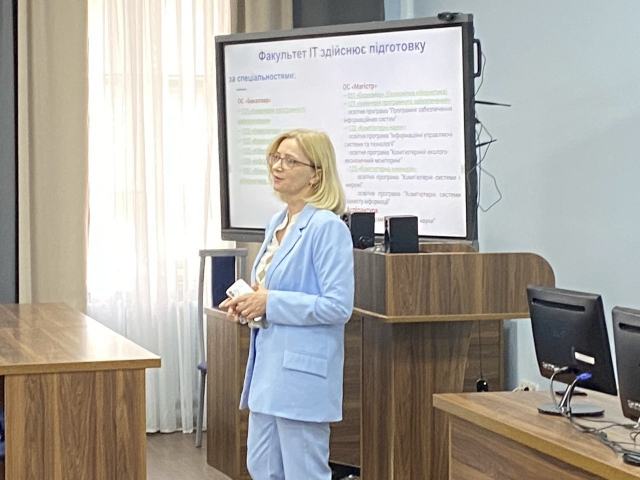 У навчальному корпусі №15 на факультеті інформаційних технологій майбутніх абітурієнтів зустріла декан Олена Глазунова, де розповіла про особливості навчання за ІТ-напрямком та можливості, які доступні для студентів у процесі навчання. Також були представлені спеціальності факультету: 121 Інженерія програмного забезпечення, 122 Комп’ютерні науки, 123 Комп’ютерна інженерія, 125 Кібербезпека та захист інформації, 126 Інформаційні системи і технології, 051 Економіка (Економічна кібернетика, Цифрова економіка).