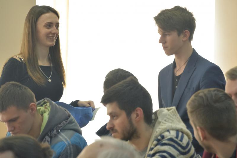 Про успіхи та особливості самоврядування студентів на факультеті розповіла голова СО Голячук Ольга. На завершення студентським активом був проведений невеличкий інтелектуальний конкурс для абітурієнтів.