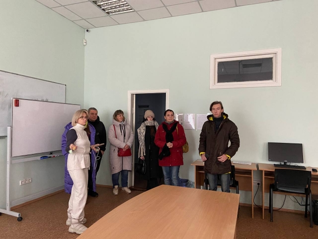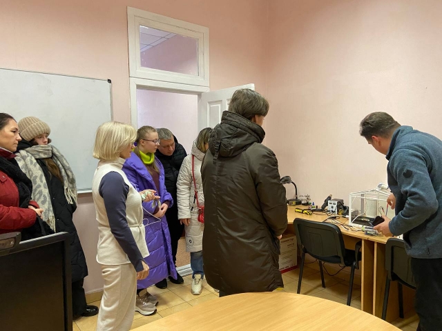 Всі присутні очно гості разом відвідали навчальний корпус №15, де їм декан Олена Глазунова з іншими представниками адміністрації факультету представили навчальні лабораторії та наявні технічне обладнання для навчання.