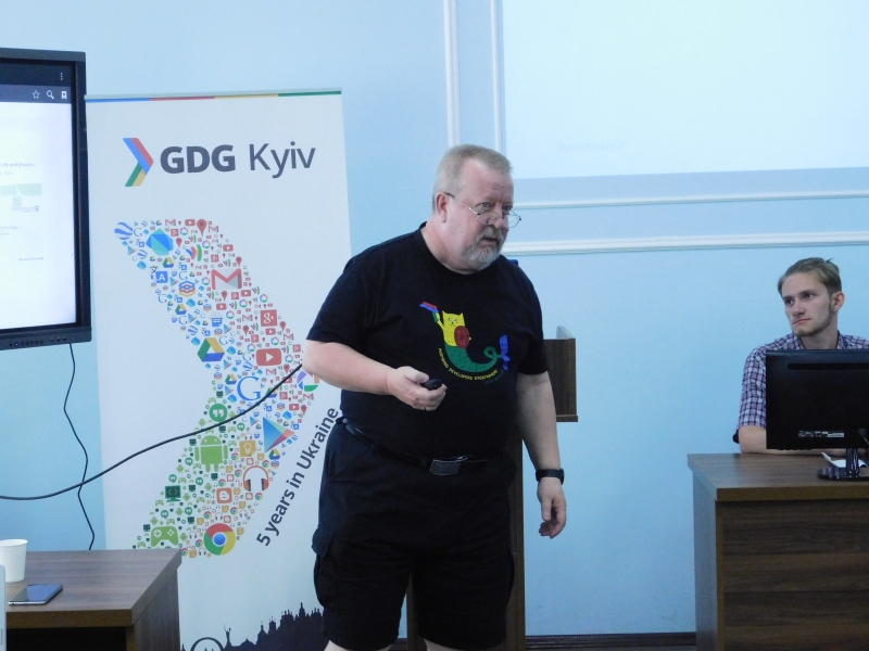 В. Іванов беззмінний керівник GDG Kyiv-Center розкрив особливості нової програми Google і перспективи міжнародної студентської співпраці на основі розширеного безкоштовного інструментарію компанії Google, який буде надано студентським компаніям розробникам.