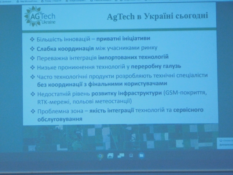 Наприкінці доповіді Ю. Петрук сформулював проблемні питання щодо проведення розробок в агросекторі України.