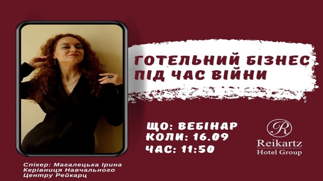 Запрошуємо Вас на вебінар "Готельний бізнес під час війни", який відбудеться 16 вересня о 11.50.